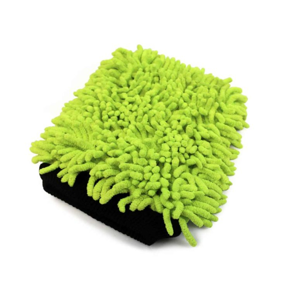 Een handschoen met 2 gezichten, een zijde met wiggly microfiber "sprieten" die stof en vuil aantrekken en deze "liften" van de lak