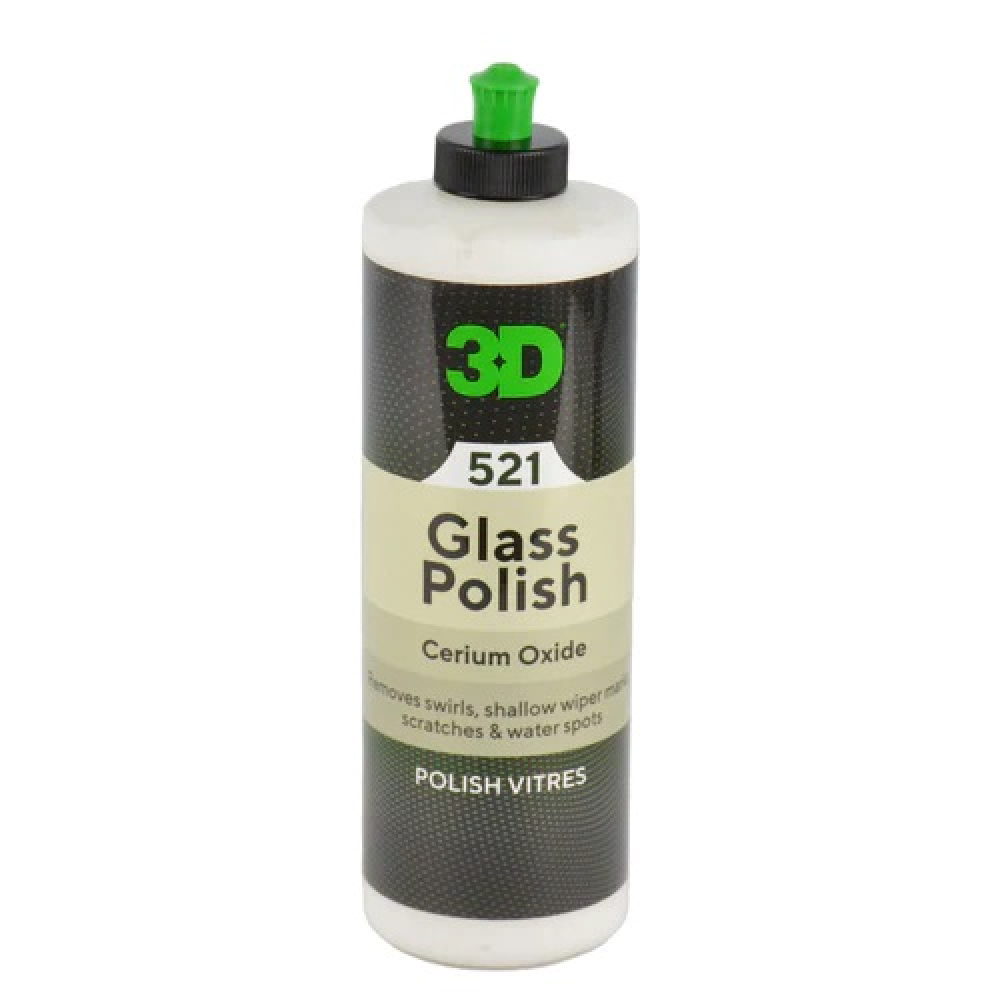 3D Glass Polish is een polijstmiddel op basis van ceriumoxide dat is ontworpen om swirls, krassen, veegsporen en watervlekken van autoglasoppervlakken te verwijderen.
