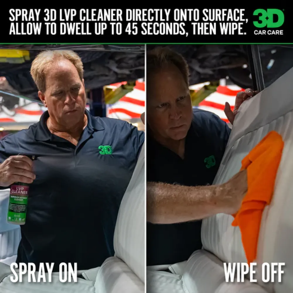 3D LVP Cleaner of Leather, Vinyl Cleaner maakt gebruik van een mix van organische ingrediënten die uitblinken en andere organische en anorganische stoffen afbreken, dit is hoe een reiniger werkt, door andere “dingen” af te breken of te emulgeren.