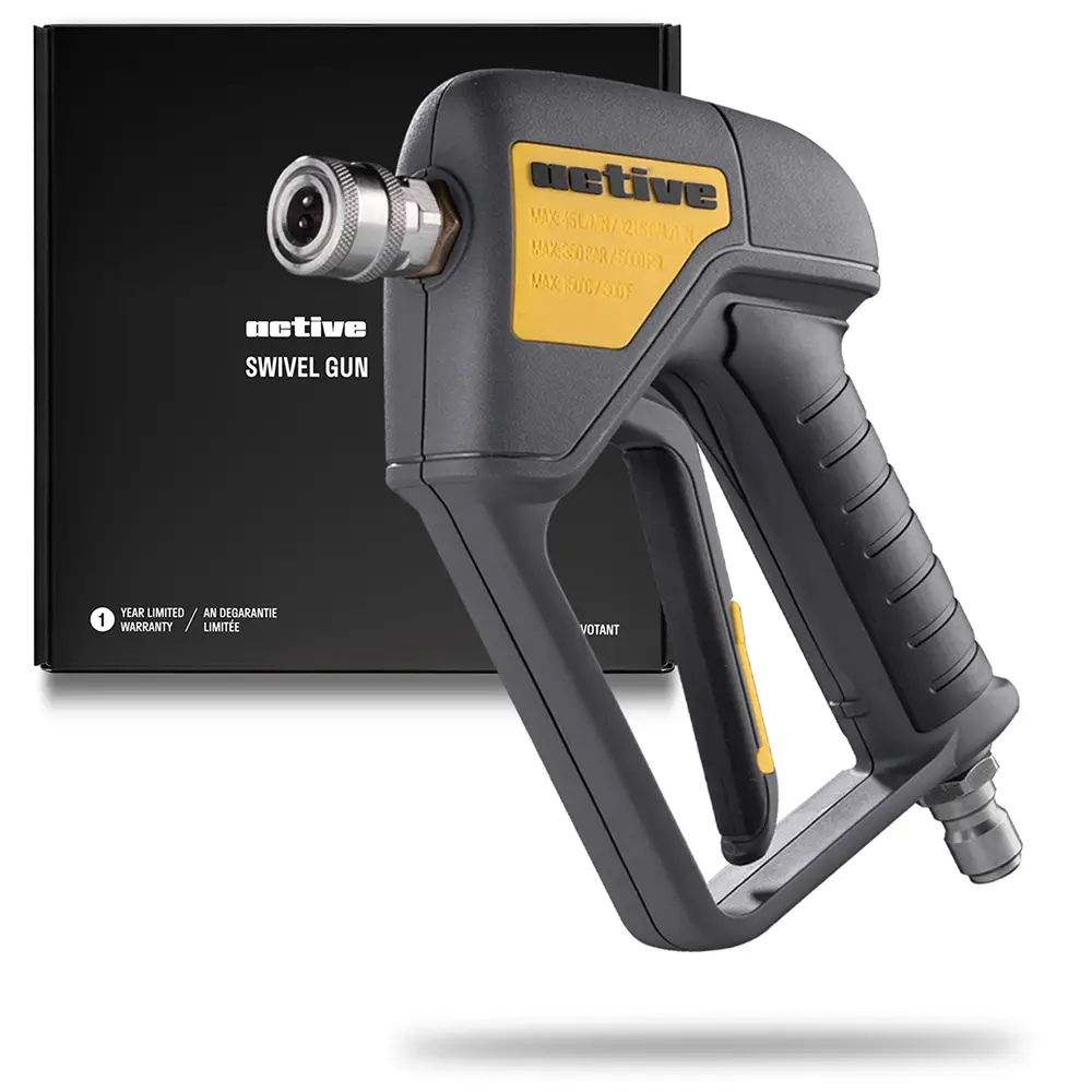 Verbeter uw schoonmaakervaring met de Active Premium Swivel Pressure Washer Gun: een hoogwaardig hogedrukpistool dat het resultaat is van meer dan twee jaar intensief onderzoek, ontwikkeling en samenwerking met professionals. Dit premium accessoire is ontworpen voor detailers en veeleisende gebruikers die geen compromissen accepteren op het gebied van kwaliteit, comfort en prestaties.
