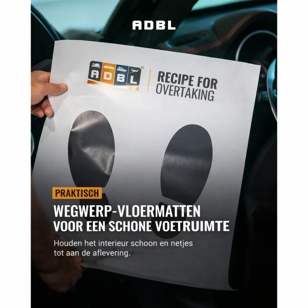 ADBL CarPets Vloermatten zijn praktische papieren automatten die de vloer van uw auto schoon houden – ideaal voor aflevering aan de klant.
