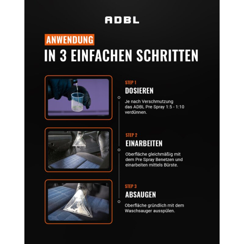 ADBL Pre Spray PRO is perfect voor gebruik bij professionele autodetailing en zorgt voor uitstekende reinigingsresultaten met minimale inspanning.