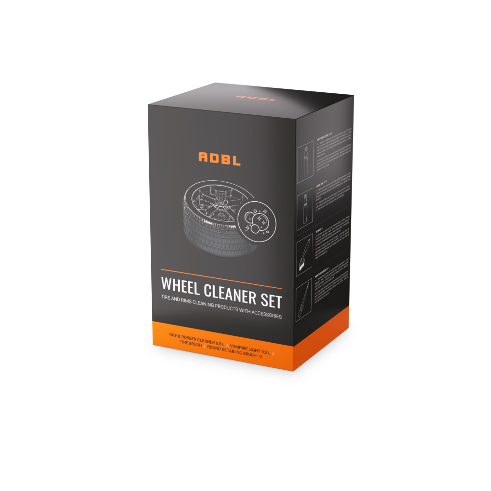 De ADBL Wheel Cleaner Set is een praktische set van vier producten voor het reinigen van banden en velgen.