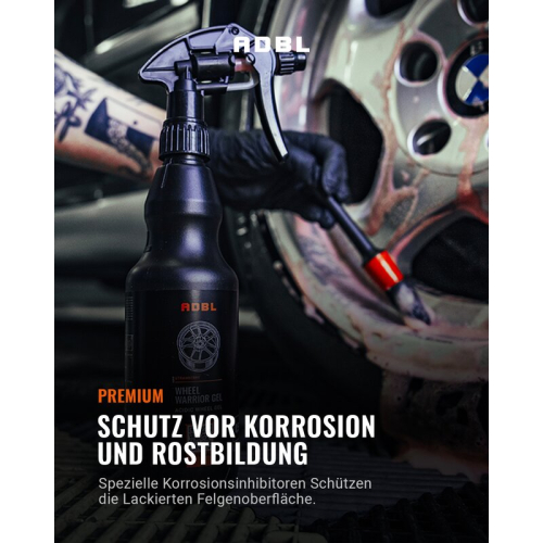 ADBL Wheel Warrior Gel is een zeer effectieve velgenreiniger op zuurbasis, speciaal ontwikkeld om zelfs het hardnekkigste vuil van stalen en gelakte aluminium velgen te verwijderen.