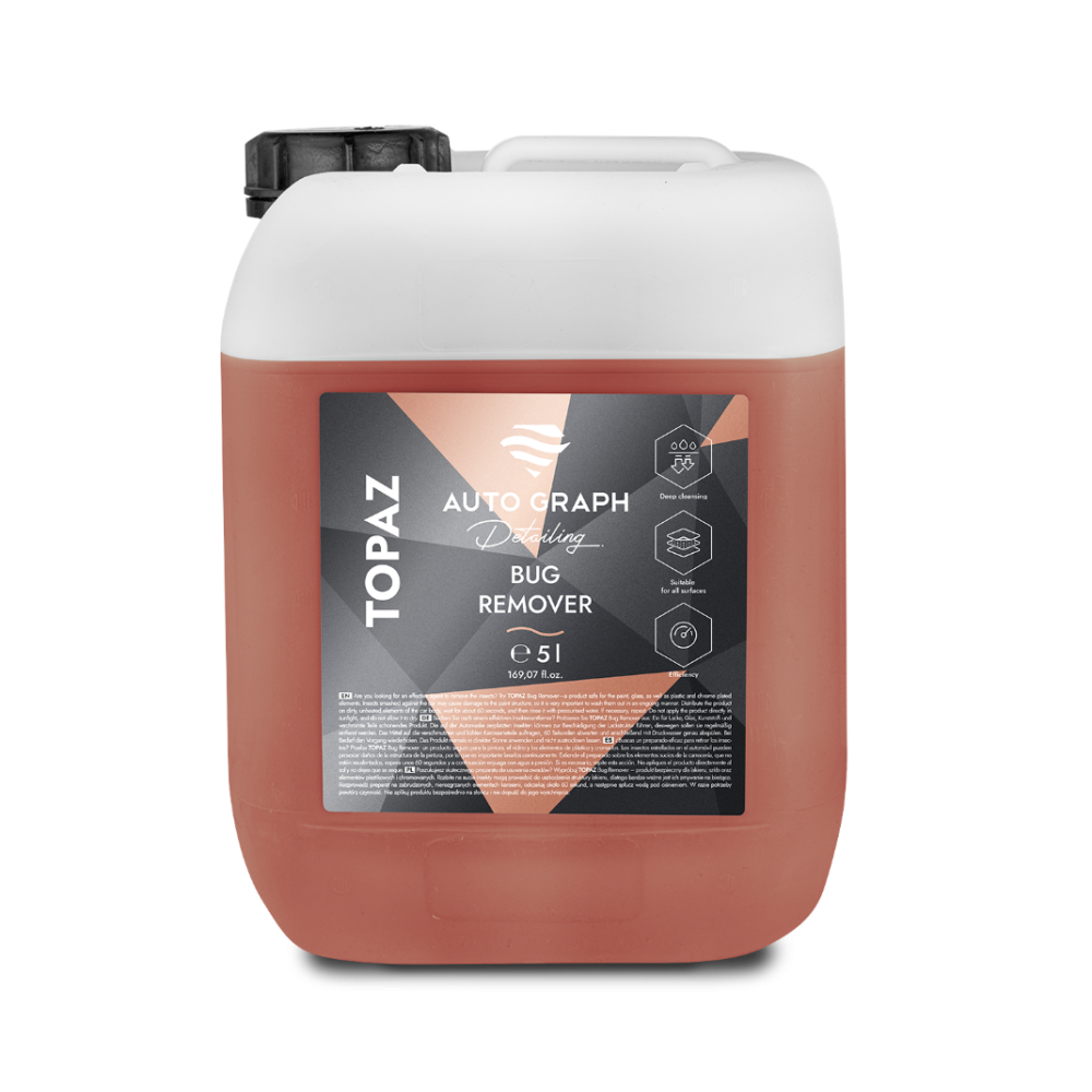 Probeer dan de Auto Graph Topaz Bug Remover, met deze 5 liter verpakking kunt u de hele zomer voorruit!