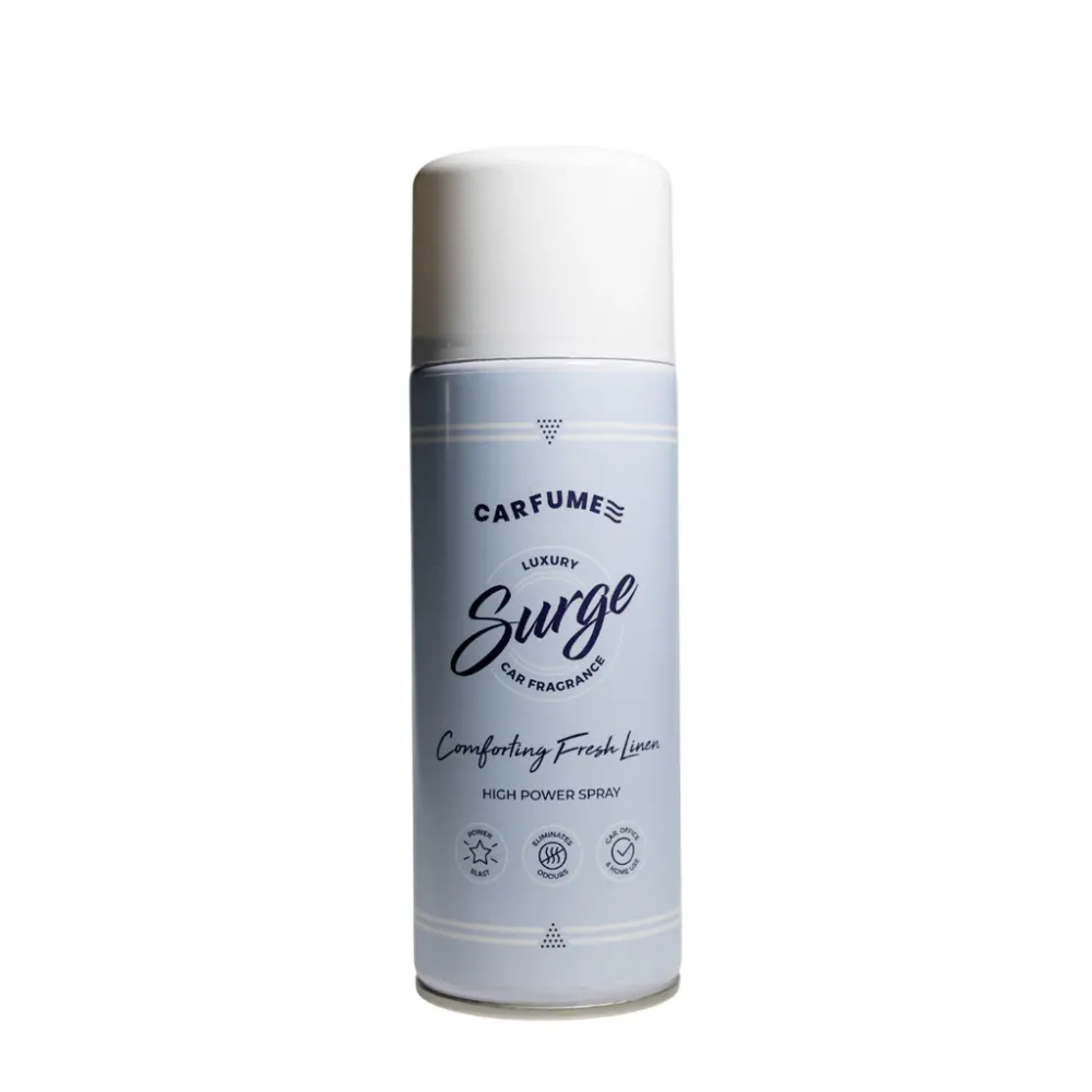 Introductie van de Carfume Ffresh Linen Carfume "Surge" , de sterkste autoluchtverfrisser met de langste levensduur op de markt - met slechts één spray vult u uw hele auto met uw favoriete aftershave- of parfumgeur!