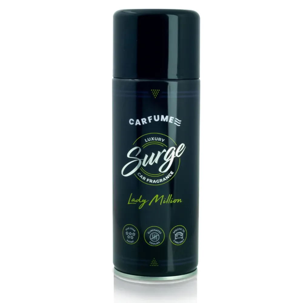 Introductie van de Carfume Lady Million Carfume "Surge" , de sterkste autoluchtverfrisser met de langste levensduur op de markt - met slechts één spray vult u uw hele auto met uw favoriete aftershave- of parfumgeur!