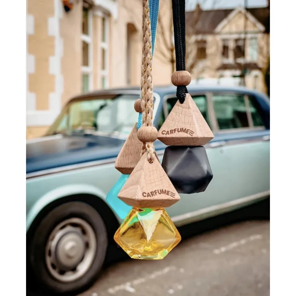 De glazen flessen met op maat gemaakte, uitgesneden houten bovenkant zien er zo elegant uit en voegen een stijlvolle toets toe aan jouw auto en geven een langdurig aroma.