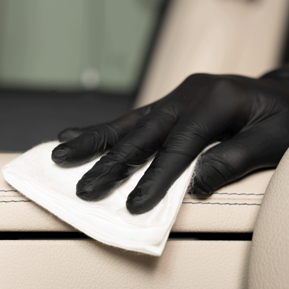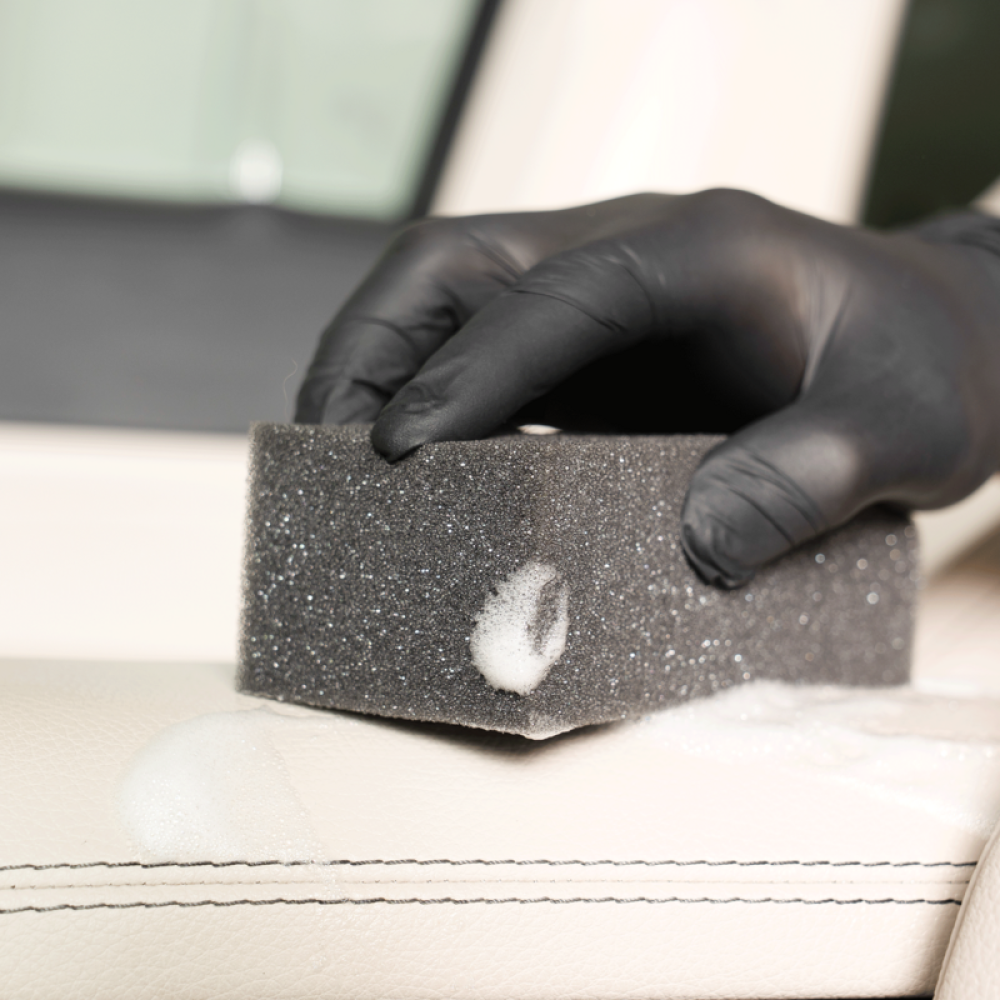 - Reinig het leer met de Leather Cleaner (Mild of Strong) en een spons