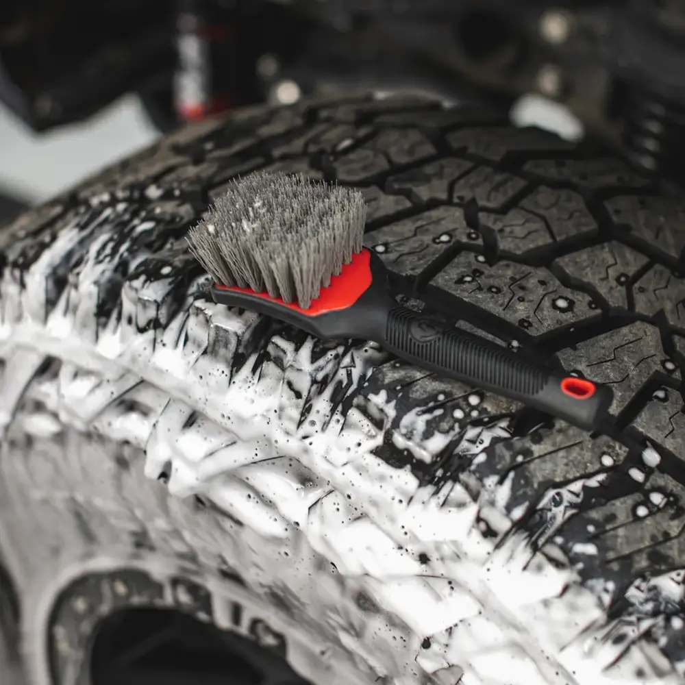 In combinatie met je favoriete rubberreiniger of allesreiniger (APC) schrobt de borstel alle bruine verkleuring van banden weg om een ​​OEM-look te herstellen.