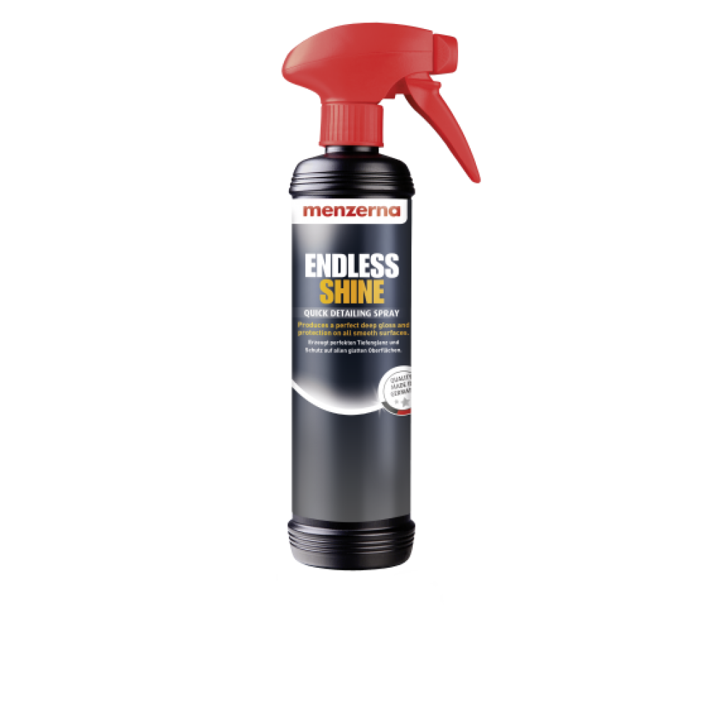 Nieuw in het Menzerna assortiment Endless Shine Detaling Spray Menzerna heeft hun jarenlange ervaring en krachten gebundeld om dit product op de markt te brengen. Deze detailing spray is ontwikkeld om een diepe glans achter te laten op de lak, en kan gebruikt worden over iedere polish, wax of sealer.