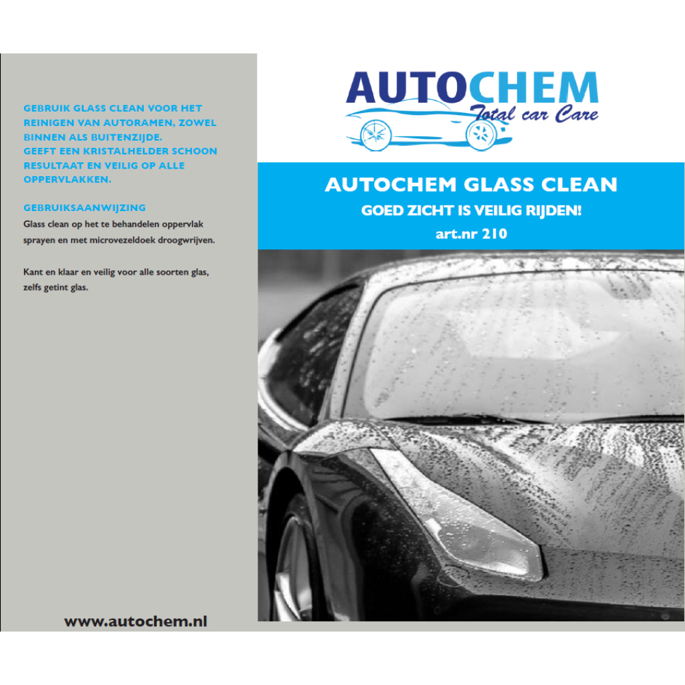 Gebruik glass clean voor het reinigen van autoramen, zowel binnen als buitenzijde.