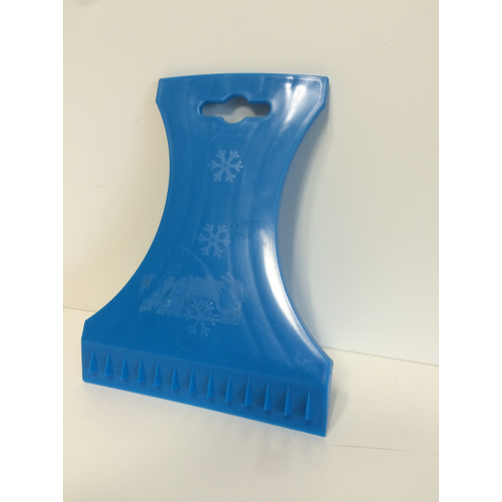 Ergonomische, gevormde grip. Dubbele rand met ribben voor het losmaken van ijs.
