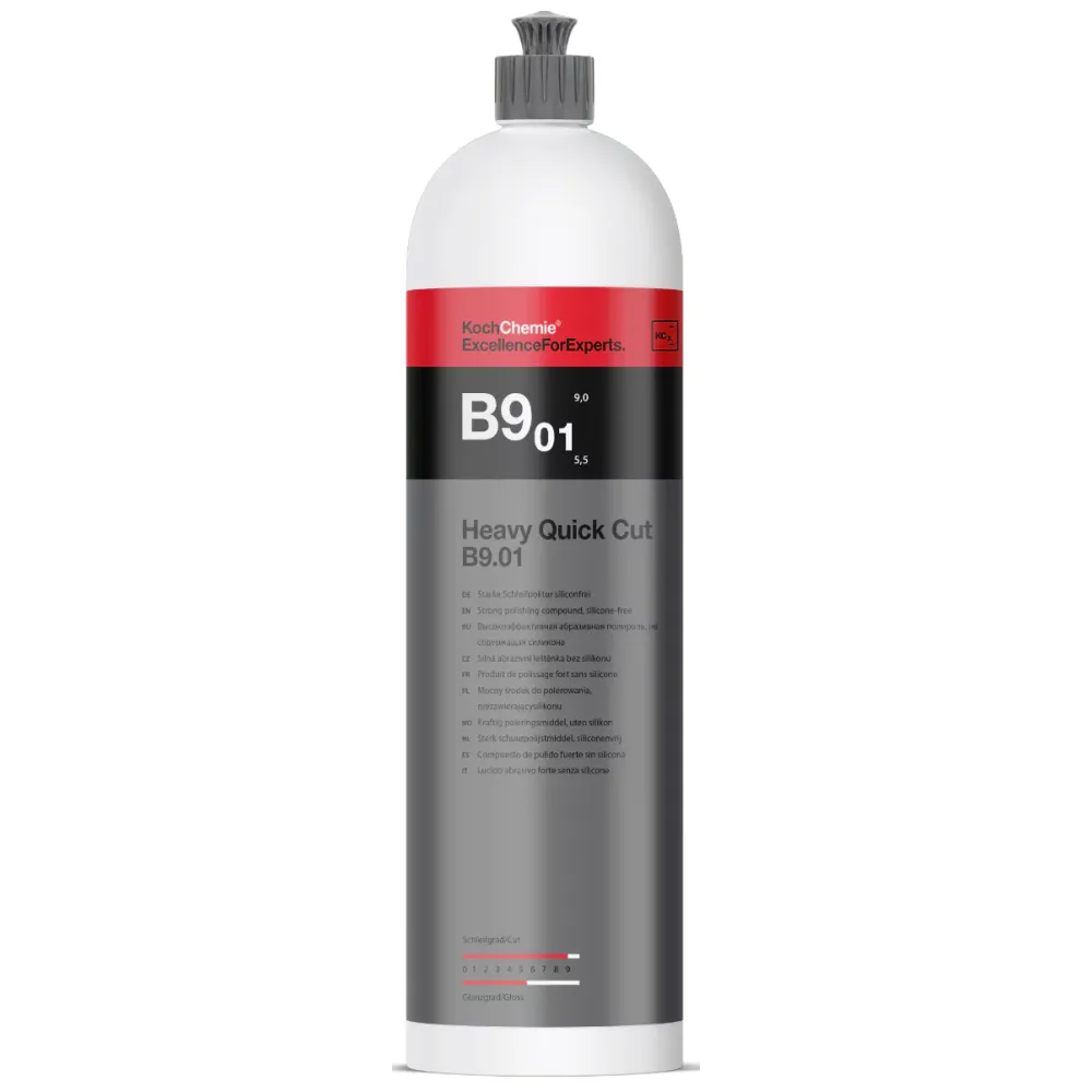 Koch Chemie B9.01 Heavy Quick Cut is een grof polijstmiddel dat met name bedoeld is voor auto's die recent gespoten zijn waarvan lak al opgeschuurd is.