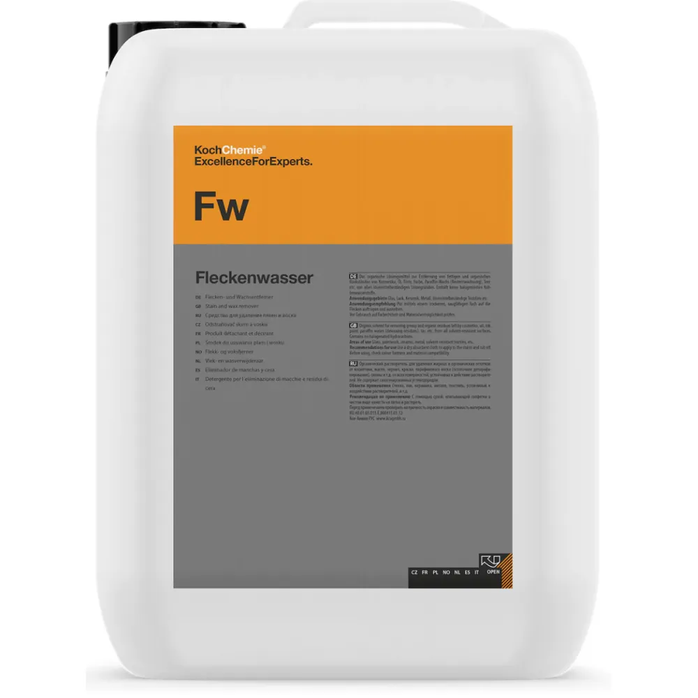 Koch Chemie Fleckenwasser (FW) bevat krachtige reinigingsmiddelen die zijn ontwikkeld voor professionele detailers die snel resultaat willen.