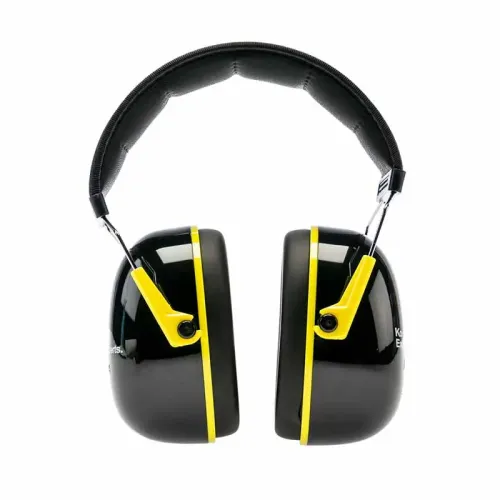De uvex K2 gehoorbescherming in zwart en geel met het Koch-Chemie-logo.