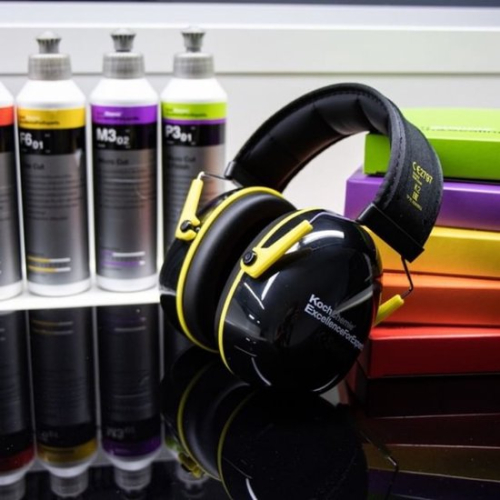 Voor de fans is er nu zelfs gehoorbescherming met de logo's van Koch Chemie