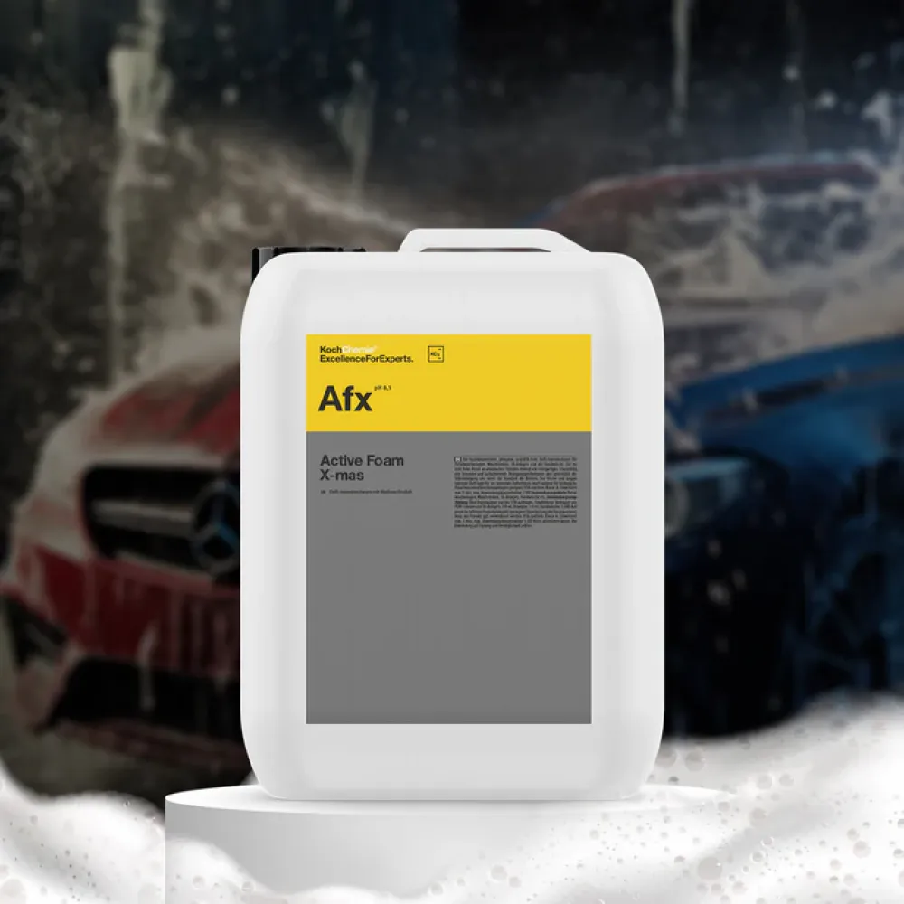 Koch Chemie Active Foam X-Mass Edition is een hooggeconcentreerd, fosfaat- en NTA-vrij schuim met een intense kerstgeur van kaneel en appel, ideaal voor wasinstallaties, wasstraten, doe-het-zelf wasboxen en handmatig wassen.