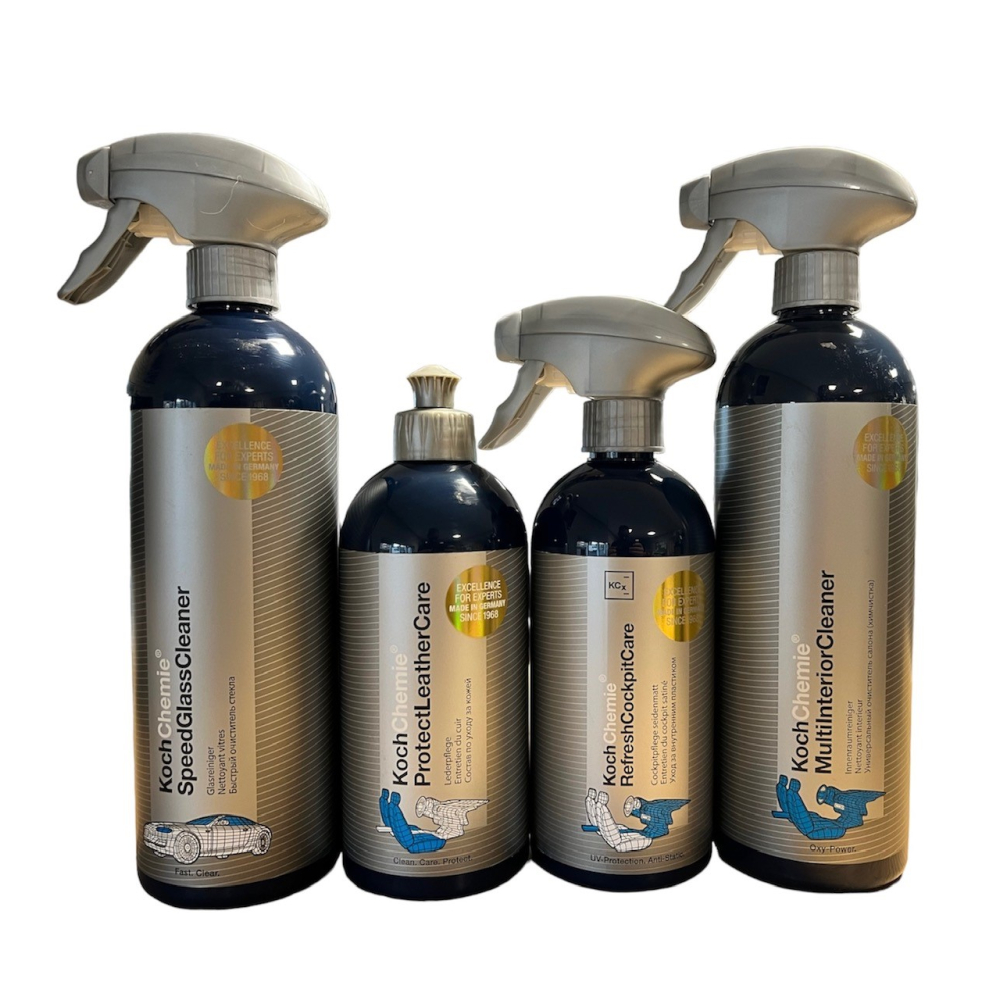 Alle belangrijke items van Koch Chemie voor uw interieur zitten er in voor, glas, leer, dashboard en reiniger