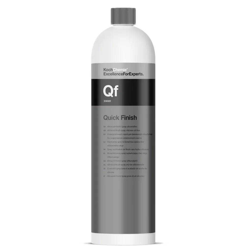 Steeds meer detailers zoeken naar siliconenalternatieven zoals Koch Chemie Quick Finish voor interieur en exterieur. De quick detailer spray verzorgt en conserveert het oppervlak in één stap.