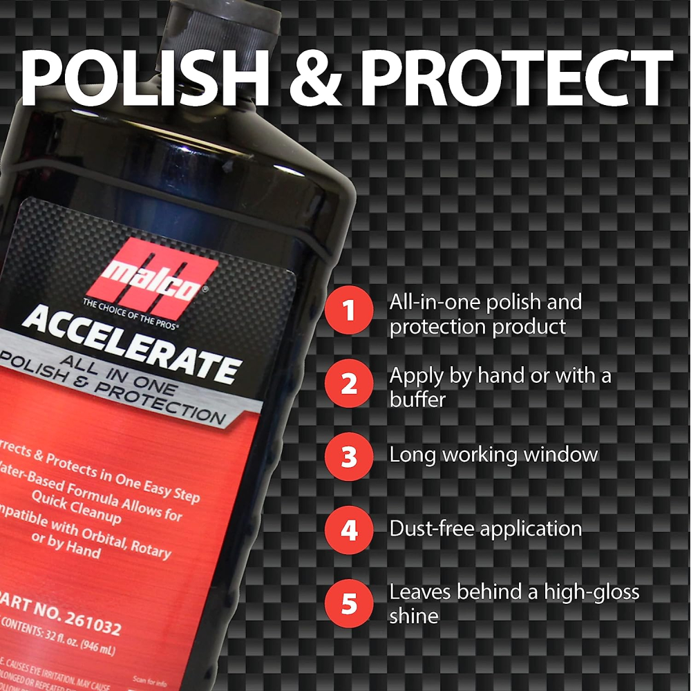 Malco Accelerate All in One polish is een eenstaps polijstmiddel, speciaal ontwikkeld om lichte tot middelzware lakdefecten te verwijderen.