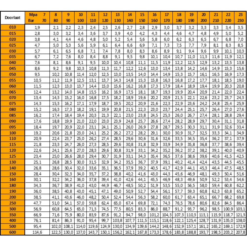 Niet zeker welke nozzle maat u nodig heeft? kijk even in de tabel of neem contact met ons op