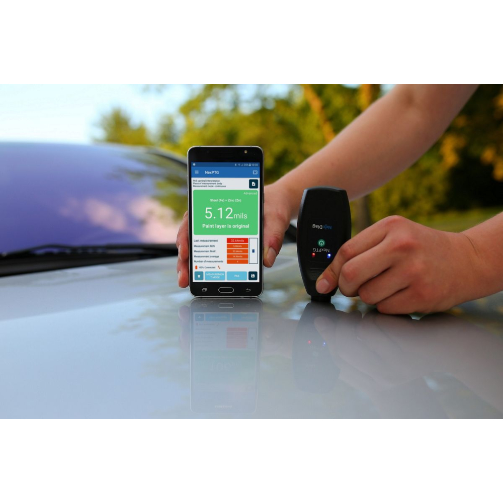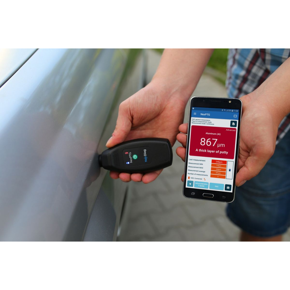 Apparaten van Nex PTG zijn de meest innovatieve draadloze diktemeters op de markt. Apparaten Nex PTG voeren 10 metingen per seconde uit en geven zeer nauwkeurige metingen weer. Bovendien kan er vrijwel elke auto mee worden gecontroleerd. Nex PTG herkent en test automatisch de laklaag op stalen en aluminium elementen.