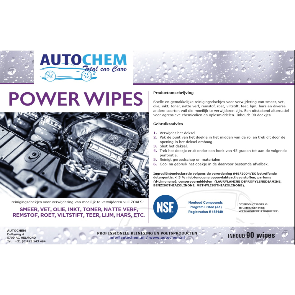 Autochem Power Wipes zijn zelfs geschikt voor keuken of de food industrie dankzij het NSF keurmerk.