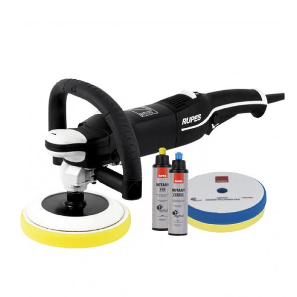 Deze machine is extreem krachtig en daardoor in staat om snel en efficiënt diepe krassen uit lak te verwijderen. De roterende polijsttechniek is soms nodig als een eerste stap in lakcorrectie. Daarna wordt voor een optimaal resultaat zonder vervelende swirls de excentrisch roterende machine gebruikt.