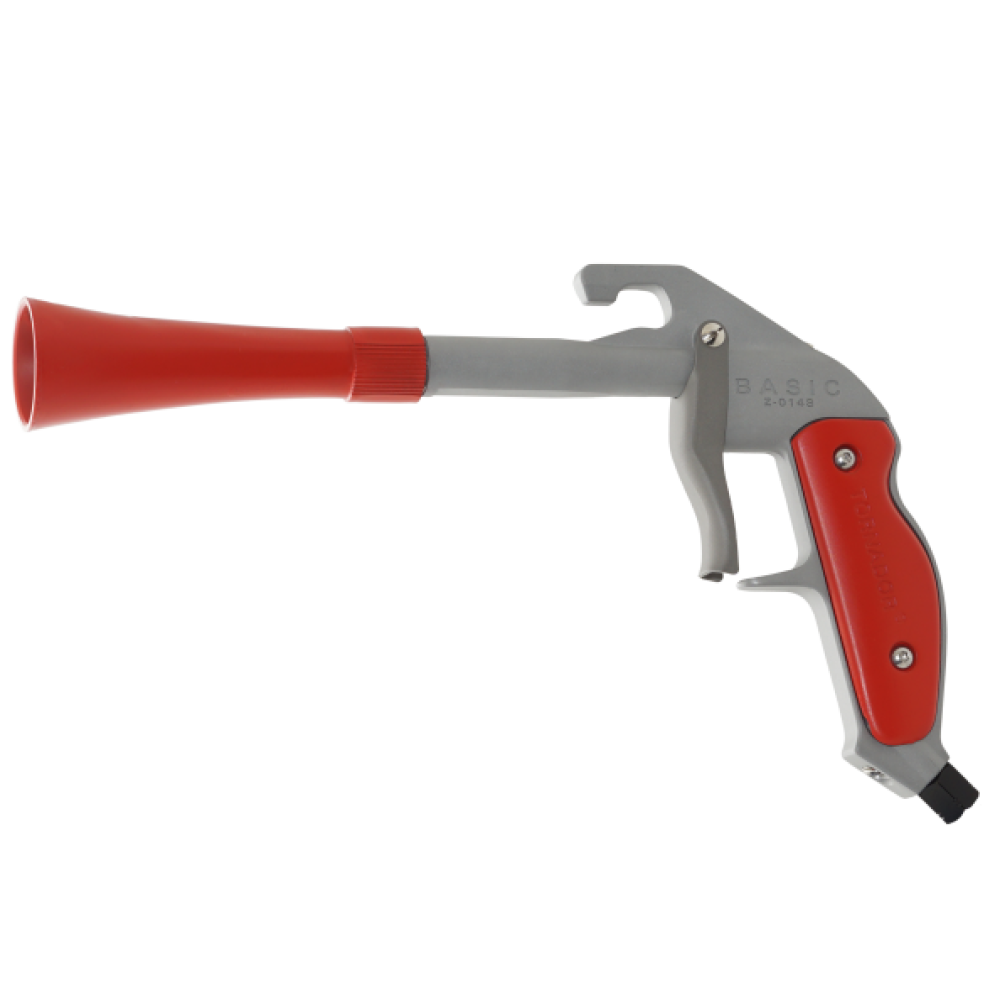 De Tornador basic gun werkt met elke lucht compressor tussen de 60 en 90 psi. Haal de trekker over om een krachtige explosie van lucht te laten ontsnappen.