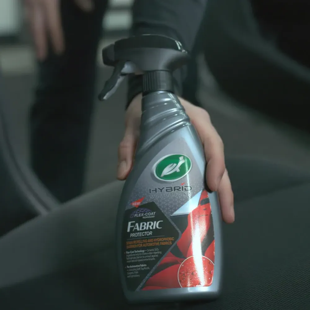 De Turtle Wax Hybrid Solutions Fabrik Protector is een textiel beschermer met flex-coat technologie en beschermt tegen vervuiling op water en oliebasis.