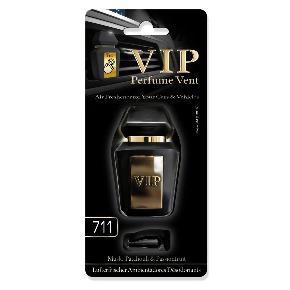 Het resultaat is een geurige symfonie die sensualiteit en frisheid combineert. VIP Perfume Vent 711 is eenvoudig op het ventilatierooster te plaatsen en werkt zodra u de ventilatie aanzet. Het verfrist de lucht, verwijdert onaangename geurtjes en geeft elke auto een premium gevoel.